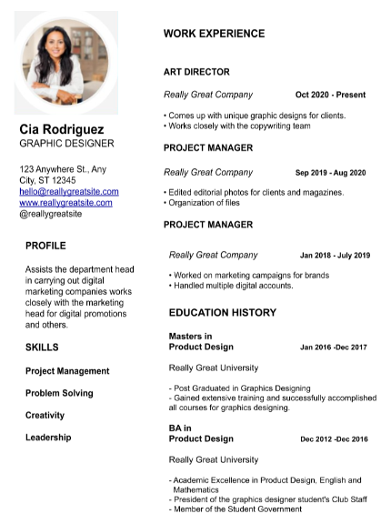 Remember when you’re creating your resume, this is your opportunity to brag about your accomplishments and achievements. You want to share highlights of your achievements, educational background, and work experience.